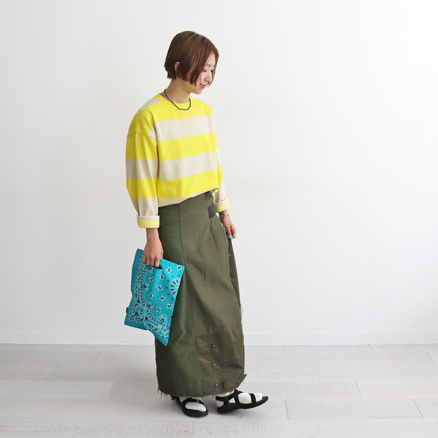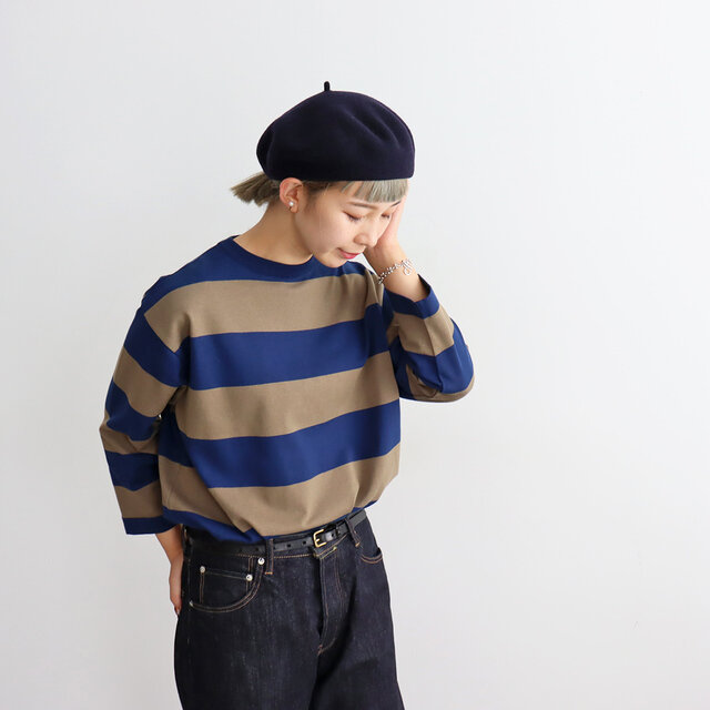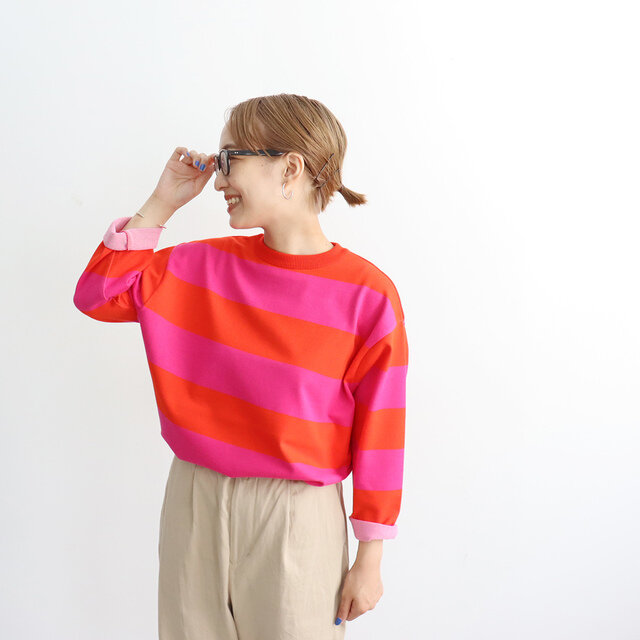 Healthknit|マルチボーダーワッフル ヘムラウンド クルーネック長袖