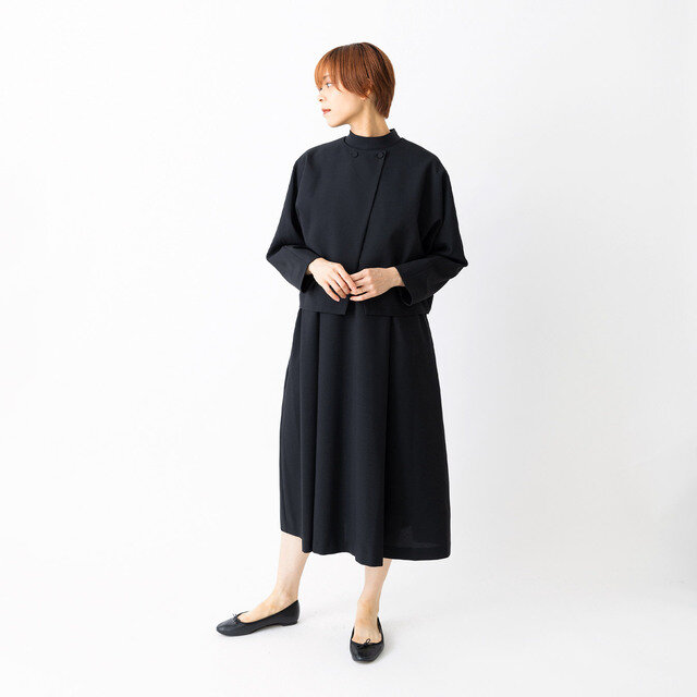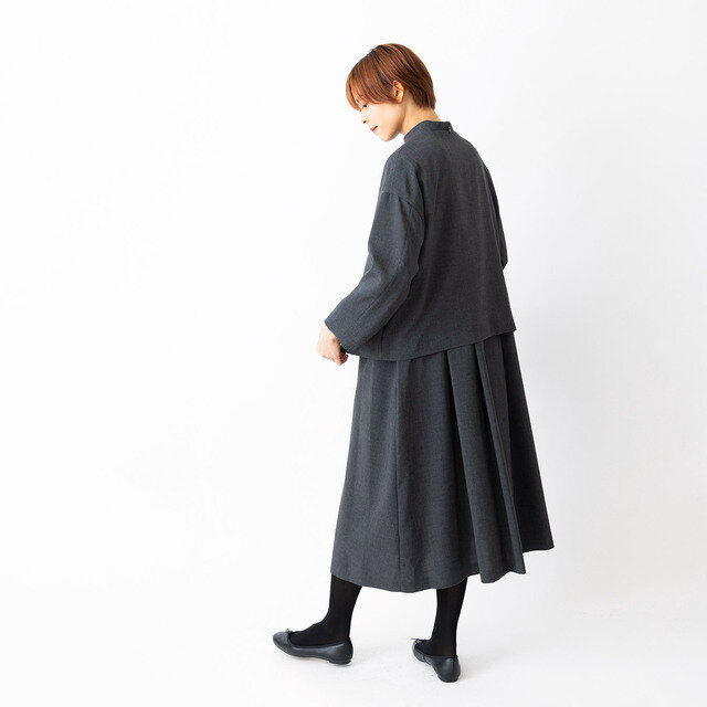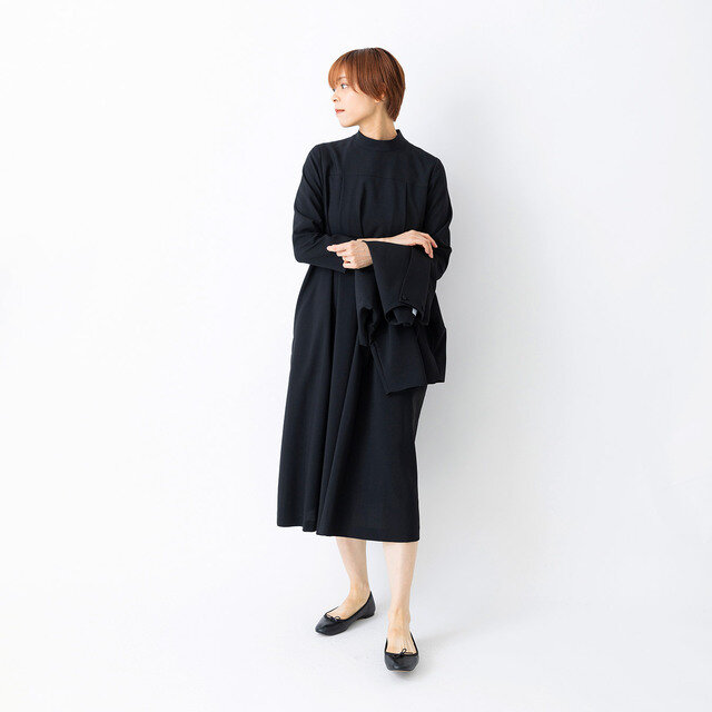 STAMP AND DIARY|縮絨ウールサキソニー Uネックストレートワンピース