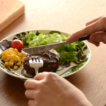 ディナーナイフ、ディナーフォークはステーキやハンバーグ、パスタなどの料理に。