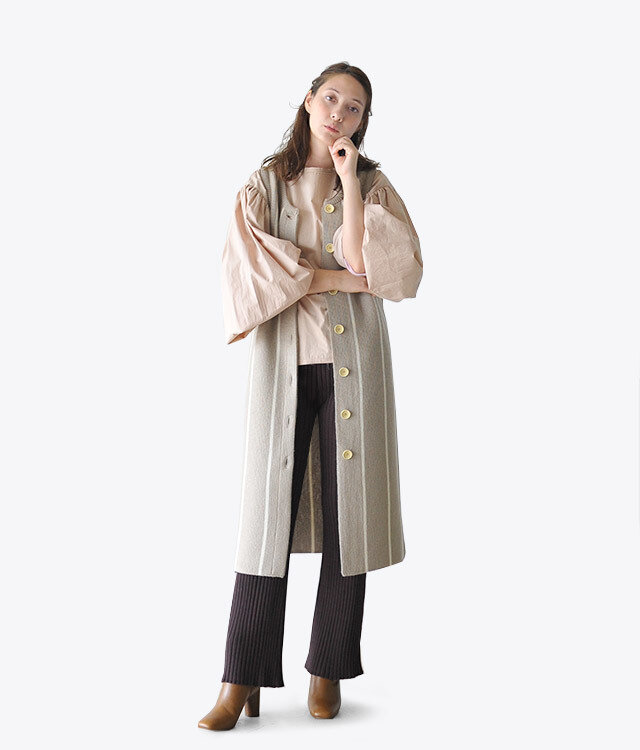 LE GLAZIK|リバーシブル ノーカラー コート ウール ロングコート チェック アウター JL-8982MFW ル グラジック