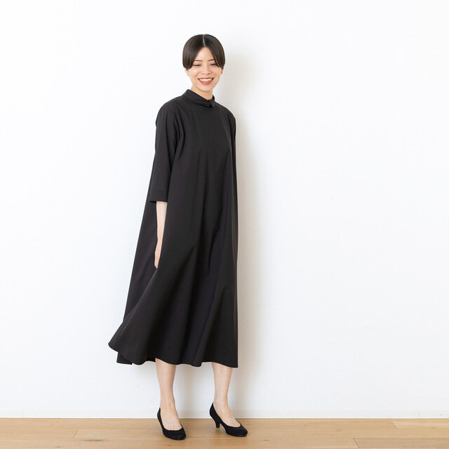 STAMP AND DIARY|縮絨ウールサキソニー Uネックストレートワンピース