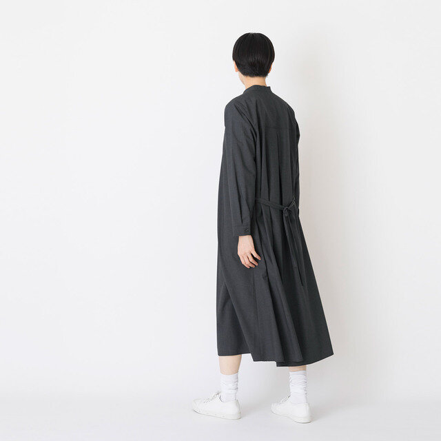 STAMP AND DIARY|縮絨ウールサキソニー Uネックストレートワンピース