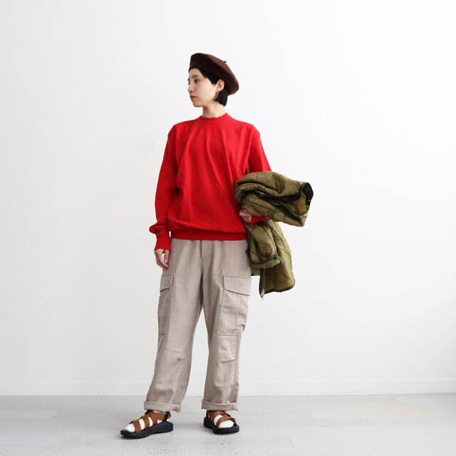 Healthknit|マルチボーダーワッフル ヘムラウンド クルーネック長袖