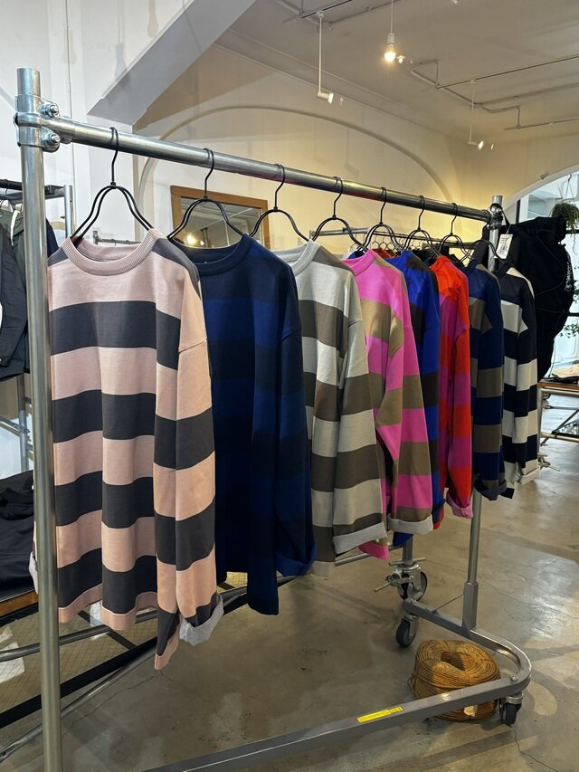 Healthknit|マルチボーダーワッフル ヘムラウンド クルーネック長袖