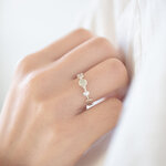 小さな花が寄り添い、輪を作るようにデザインされた「花の輪の指環」、その形はリースのよう。古くからリースが象徴すると言われている「永遠」「平和」「調和」をいつも指元に感じられるようにと作った指環です。