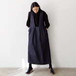 岡山産の高級シルクコットンデニムを贅沢に使用したジャンパースカート。 シルク混ならではの上品な光沢と滑らかな肌触りが特徴で、 デニムでありながらカジュアルすぎない大人の雰囲気に。