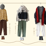 腰回りにはゆとりあり、膝から下はナチュラルなスッキリさを兼ね備えているスッキリパンツ! 今季はコーデュロイ生地でおつくりしました! 今回は3色それぞれのコーディネートを作ってみました!