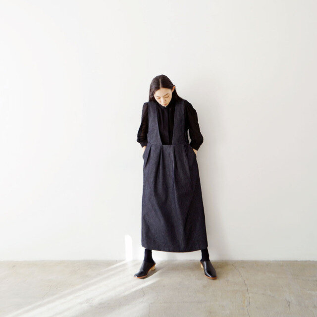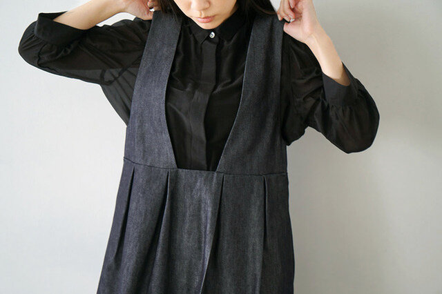 Mochi|silk denim jumper skirt  ジャンパースカート