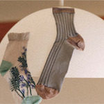 シルエットの花柄がデザインされたソックスは、透け感のある素材に、フリルの履き口がポイントになっています。