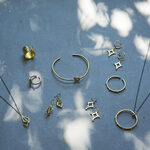 馴染み深いキラキラのモチーフの四隅に、真鍮の小さな粒がついたアクセサリー。