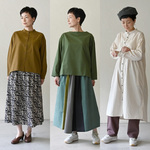 腕回りがスッキリな分、カーディガンやジレの重ね着など、長く幅広く使えます。