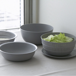 深型は、ザルが高さ104mmと深めで、お米なら4カップ(4合分)までが一度に研げます。また、米とぎにも使えるザルとボウルシリーズは、いずれも耐熱温度が140℃と高いため、米研ぎ以外にも、茹でた麺をあげたり、油抜きをしたり、野菜を洗ったりと、お料理の下ごしらえを任せることもできます。