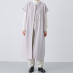 ボタンを閉めてカフタンワンピース風に、前を開けるとロングベストになり着こなしの幅を広げます。