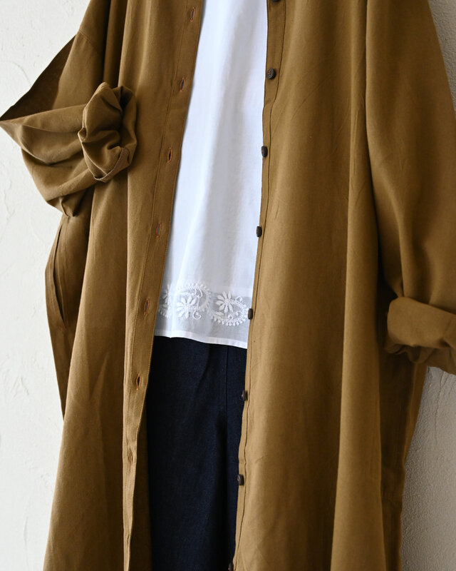 sisam|OCスラブヘリンボンステンカラーコート【オーガニックコットン】【裏地付き】【ジャケット・アウター】