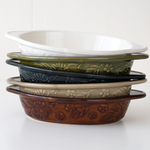 見た目も可愛いマーガレット柄がポイントのグラタン皿と、リーフ柄でスッキリデザインのボウルをご紹介します◎