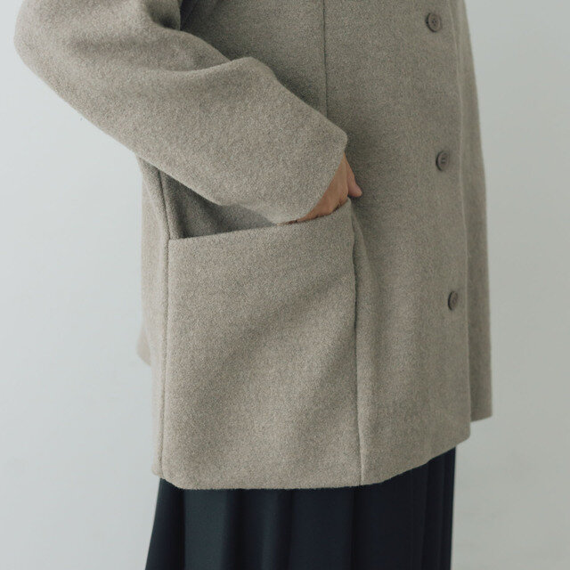 Gauze#|縮絨 ウール イージー フード ブラウス チャコール