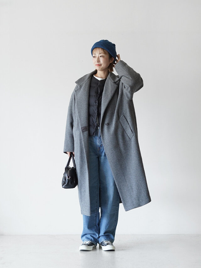 LE GLAZIK|リバーシブル ノーカラー コート ウール ロングコート チェック アウター JL-8982MFW ル グラジック