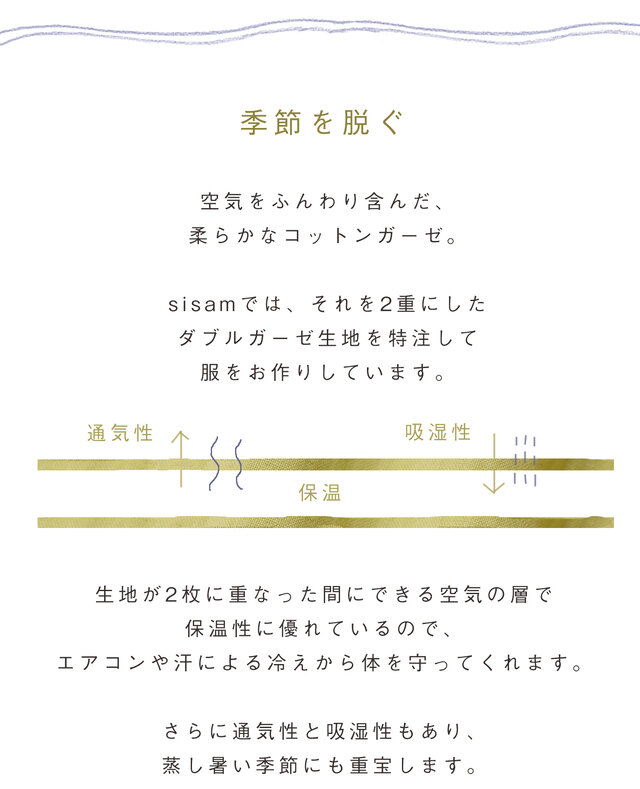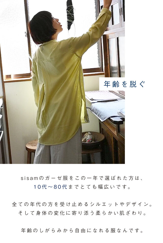 sisam|WGハンソデギャザーシャツ【ダブルガーゼ】【半袖シャツ】【やわらか】