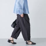 オーバーサイズがリラクシーなリネンのトップスに、スッキリとしたテーパードパンツでバランス良く。