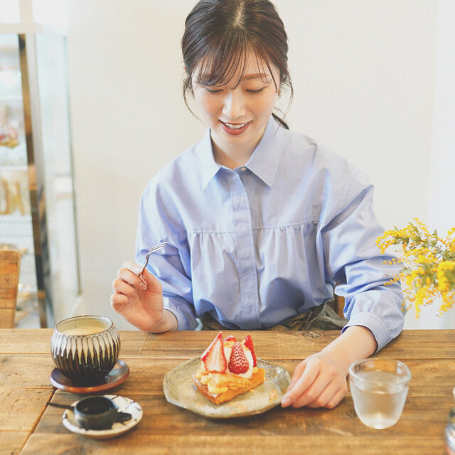 Shinzone|オーガニック コットン ガーゼ ブラウス ラウンドカラー ビッグカラー パフスリーブ シャツ 白シャツ 25SMSBL19 シンゾーン