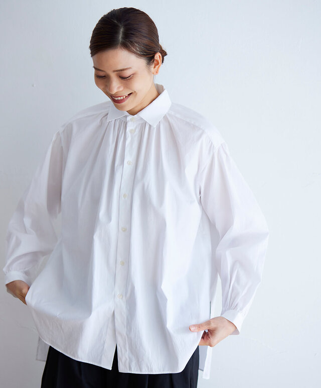 STAMP AND DIARY|プレミアムクロスギザ スモールカラーギャザーブラウス