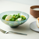 美しく、透明感が涼やかなガラスの器がお好きな方は多いかと思います。ただ、ガラスにはどうしても「夏」のイメージがあり、空気がひんやりしてくると、自然と食卓から姿が消えてしまうことも。 そこで吹きガラスのブランド「fresco」と一緒に作ったのが、一年中違和感なく使い続けられる「日常使いのガラスボウル」。朝昼晩どの時間帯にも丁度いいサイズ感と陶器みたいな雰囲気だから、食卓に欠かせない「いつもの器」となるはずです。