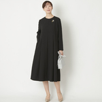 大人の女性の魅力を引き立てる服作りに定評のあるSTELLA CIFFON(ステラ シフォン)。デザイナーの森田さんが「これ以上の素材はなかなか見つからない」と太鼓判を押す、ウォッシャブルポリエステルのシリーズにワンピースが加わりました。 しわになりにくく、程よくハリがあり、自然にできるドレープがきれい。ブラックフォーマルとして着られる上質感がありつつ、洗濯機で洗えるという優れものの素材を、ステラシフォンらしい、大人の女性の体型を考え尽くしたデザインに仕立てました。おそろいの素材のジャケットと組み合わせて着ることもできます。 フォーマルウェアは、いざイベントが間近に迫ってから探し始めてもなかなか良いものが見つからず焦ってしまうものです。仏事や卒入学などの学校行事、結婚式と、あらゆるイベントに対応できるアイテムがワードローブにあれば安心です。 ブラックに加えて、ネイビーが新たに登場しました。シャープできりりとしたブラック、柔らかい雰囲気になるネイビー、お好みやシーンに合わせて選べるようになりました。