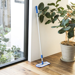 こんにちは、バイヤーの加藤です。 毎日掃除機をかけていても、うっすらと積もるほこりが気になることはありませんか。水拭きすると部屋も気分もすっきりするとわかってはいても、ずぼらな私はなかなか気分がのらずにいました。 雑巾がけは、長時間体をかがめるのが辛いなと感じてしまいます。市販のウェットシートはモップにセットするのがおっくうですし、購入しても使わずにいると、気がつけばシートが乾ききってしまうこともしばしば。 そんな私が使い続けているモップがMQ・Duotexのモップです。一見何の変哲もないモップとクロスのセットなのですが、こちらを使い始めてから、ほこりが気になってきたらさっと水拭きをする習慣がついてきたように思います。
