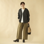 ワイドなシルエットのパンツに挑戦してみたいけれど、バランスを取るのが難しいという方は多いのではないでしょうか。 FILUM(フィルム)から届いたメリハリカーブパンツは、そんな方にピッタリのアイテム。 少しハイウエスト&カーブの入ったゆったりシルエットで、体のラインを拾わず、すっきり着用できます。