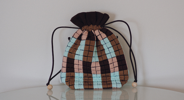 TRICOTÉ|ピクセル巾着ポーチバッグ[チェッカー]